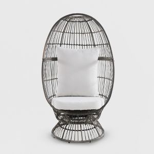 Welwick Designs 1 Person Brown Rattan Patio Swing Egg Chair With Egg Chair White