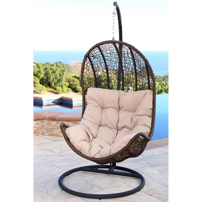 Abbyson Living Newport Outdoor Wicker Egg Shaped Swing Chair In Brown Beige Bed Bath Beyond Egg Shaped Wicker Swing