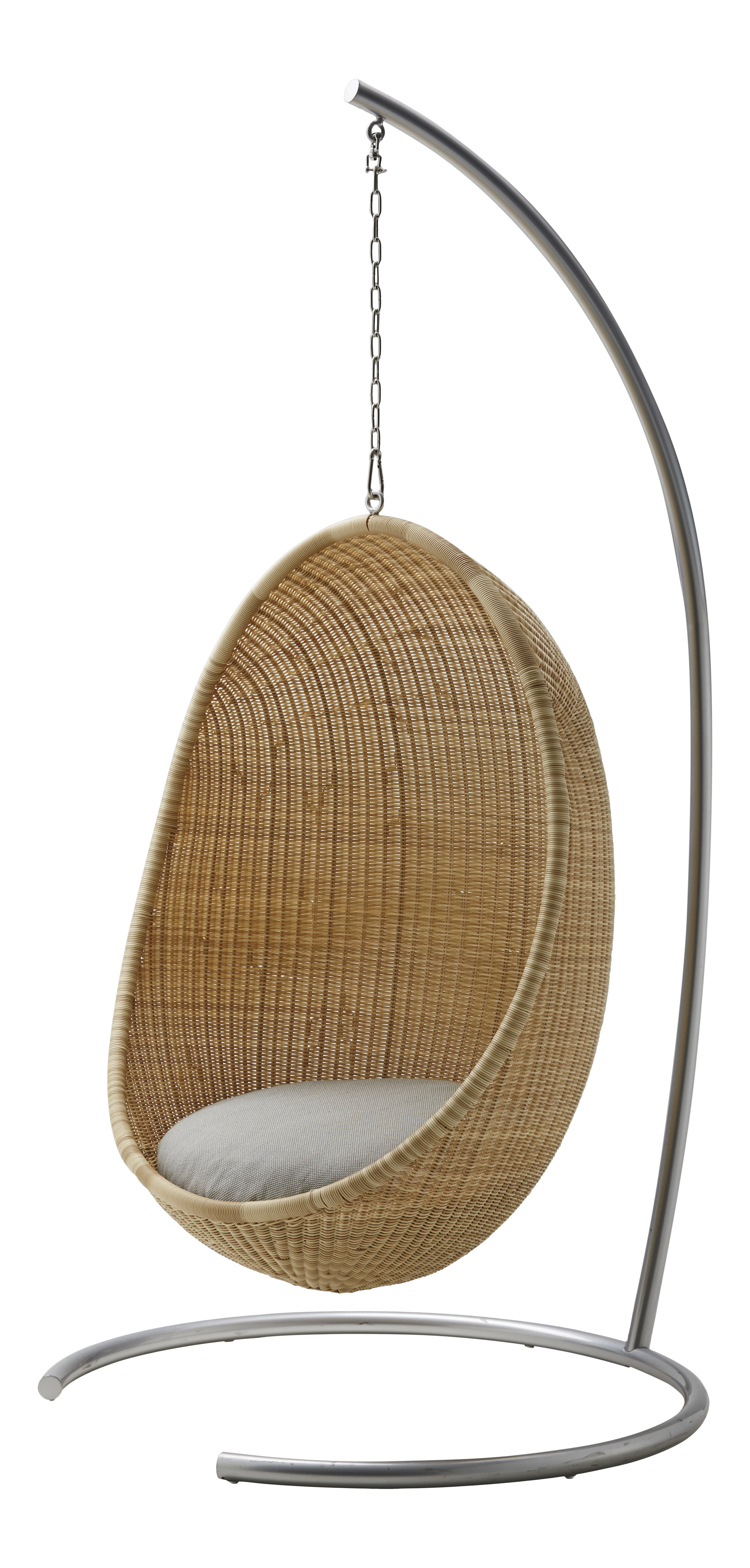 Hanging egg chair nanna ditzel. Chain and fitting sold separately. The hanging egg chair 1959 this playful piece of can be used both inside and outside and can be both hung from a chain or attached to a stand. This distinctive chair is both a conversation piece and a delightful place to unwind and the alurattan makes it ultra durable and maintenance free.