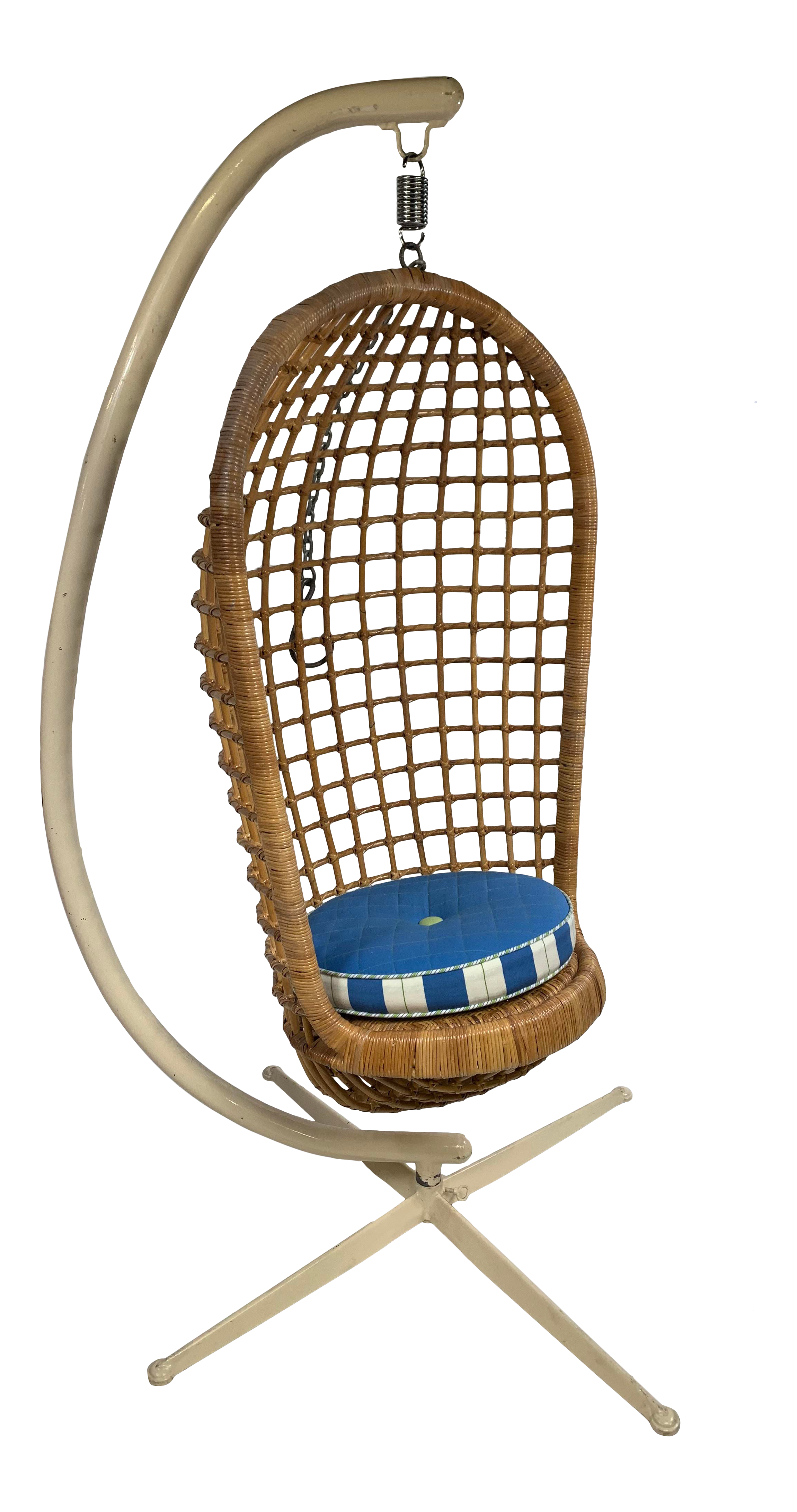Vintage Modern Hanging Rattan Egg Chair With Castiron Stand Chairish Vintage Rattan Egg Chair